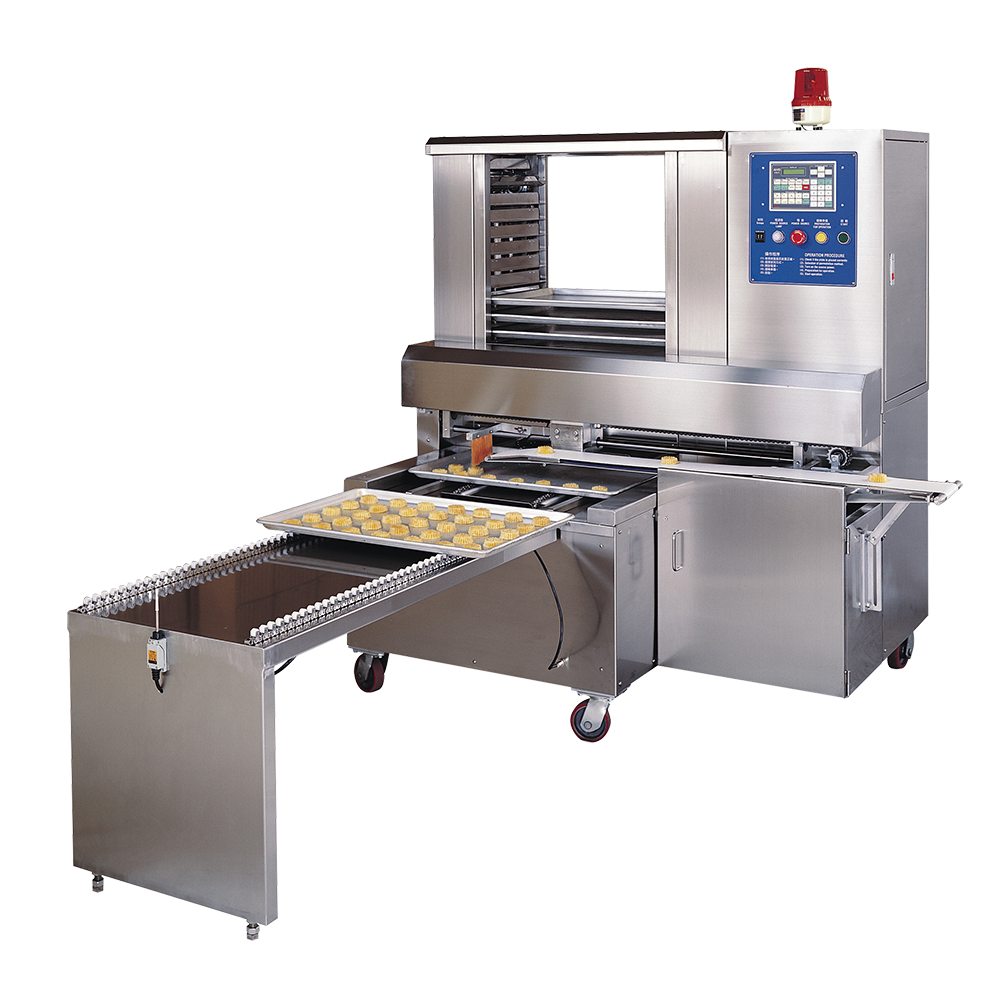 يمكن لهذه الآلة أن تقوم تلقائيًا بإدخال صواني الخبز وترتيب المنتجات بشكل منظم على صواني الخبز.